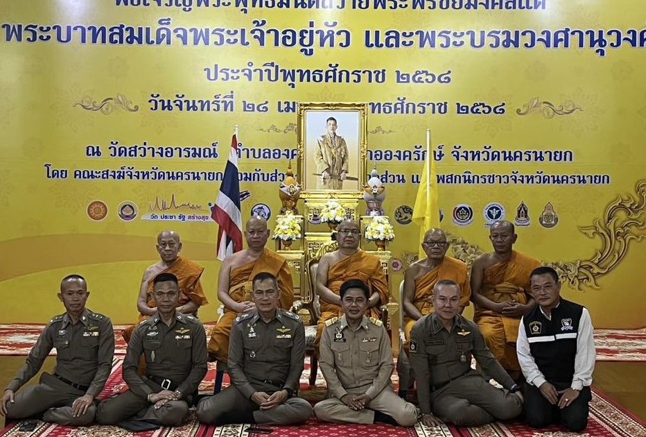วันที่ 28 เม.ย. 2568 เวลาประมาณ 15.30 น. พล.ต.ต.ปราโมทย์ งามประดิษฐ์ ผบก.จว.นครนายก พ.ต.อ.เกริกศิษฐ์ เนียมนัดฐ์ ผกก.สภ.องครักษ์ พ.ต.ต.พิษณุ ชลาลัย สวป.สภ.องครักษ์ พ.ต.ต.จักรกฤษณ์ โนนสิงห์ สวป.(ชส.)สภ.องครักษ์ ร่วมนายอำเภอองครักษ์พร้อมกำลัง เจ้าหน้าที่ตำรวจ เจ้าหน้าที่ชุดจิตอาสา จำนวน 10 นาย ข้าราชการตำรวจร่วมพิธีเจริญพระพุทธมนต์ถวายพระพรชัยมงคลแด่ พระบาทสมเด็จพระเจ้าอยู่หัวและพระบรมวงศานุวงศ์ ประจำปีพุทธศักราช 2568 ณ วัดสว่างอารมณ์ ตำบล องครักษ์ อำเภอองครักษ์ จังหวัดนครนายก